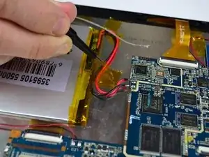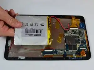 Динамики прикреплены к внутренней стороне задней крышки и соединены проводами с материнской платой планшета. Будьте осторожны, чтобы не оторвать их при снятии задней крышки.