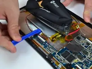 Удалите батарею из устройства с помощью пластикового инструмента.