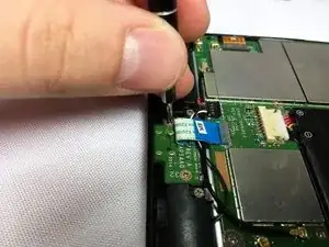 Отключите шлейф, соединяющий плату зарядки с материнской платой, с помощью пинцета.