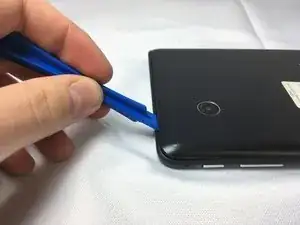 Осторожно подденьте заднюю крышку с помощью пластикового открывающего инструмента.