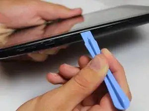 Вставьте пластиковый инструмент между передней и задней панелями и аккуратно подденьте их со всех 4 сторон.