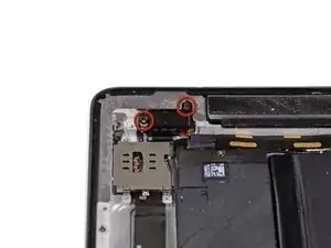 Выкрутите три винта Phillips длиной 2 мм, которые крепят слот для карты SIM к задней панели.
