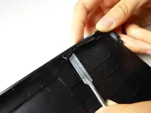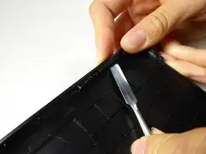 Вставьте пластиковый инструмент для открывания в края планшета, чтобы открыть его.