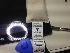 Разогрейте iOpener в микроволновой печи согласно инструкции, затем положите его вдоль нижней части устройства по логотипу Samsung так, чтобы нижняя часть дисплея была полностью покрыта.