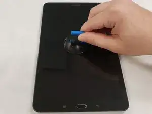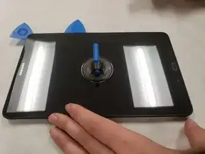 Возьмите присоску и аккуратно приподнимите экран в направлении верхней части планшета.