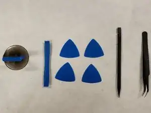 Подготовьте необходимые инструменты: инструмент для вскрытия iFixit, медиаторы iFixit, точные пинцеты, присоску и лопатку.
