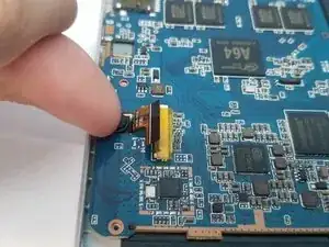Поднимите пять удерживающих защёлок и извлеките хрупкие шлейфы питания и клавиш громкости, ЖК‑экрана, камеры, дигитайзера и дочерней платы с разъёмом для наушников.