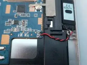На этом этапе полезно приподнять динамик, чтобы провода не порвались.