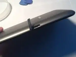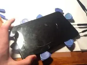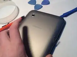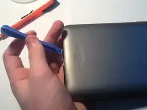 Аккуратно начните с нижней части планшета, поддев заднюю панель.