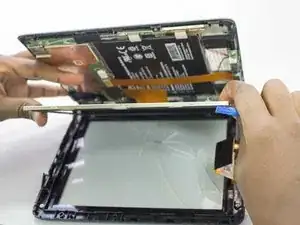 Отделите дигитайзер экрана от дисплея, обращая внимание на размещение быстроразъемного шлейфа.