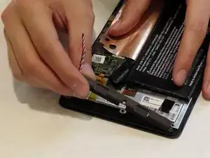 Используя пластиковый инструмент, отделите заднюю крышку от основного устройства.
