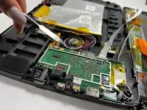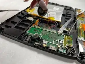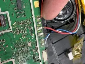 Назначение динамика — воспроизводить звук, слышимый слушателем. Динамики — это преобразователи, которые превращают электромагнитные колебания в звуковые волны. Динамики принимают аудиосигнал от устройства, такого как компьютер или аудиоприёмник. В некоторых планшетах два динамика и стереозвук, в некоторых — только один динамик. На шаге 6 этого руководства вы будете отщёлкивать динамик от корпуса. При выпаивании соединений HP+ и HP- на материнской плате будьте осторожны с контактами.