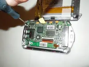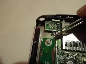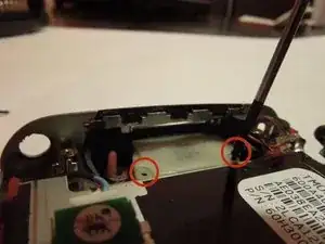 Открутите два винта Phillips #00, чтобы освободить динамик, используя отвертку Philips. Винты имеют длину 0,3 мм.