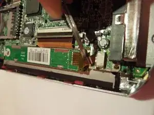 Чтобы добраться до динамика, постарайтесь освободить материнскую плату, удалив все провода из их фиксаторов с помощью пинцета.