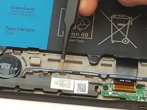Используя синюю открывашку, аккуратно удалите провод, соединяющий динамик с материнской платой