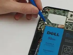 Используя синюю открывашку, отделите заднюю пластиковую крышку от устройства. Начните с угла и двигайтесь по периметру планшета.
