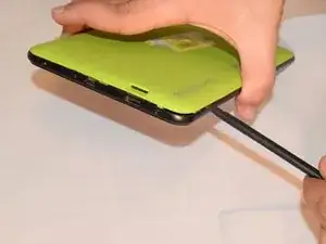 Подденьте пластиковую заднюю панель лопаткой и пластиковыми инструментами для вскрытия. Подойдёт любой предмет, который обеспечивает достаточный рычаг и не проводит электричество.