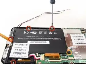 Используя отвертку Phillips #00, удалите 5 винтов, удерживающих батарею на месте.