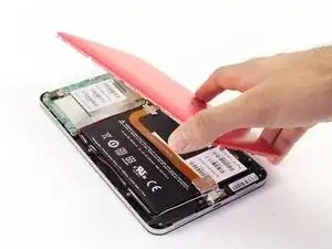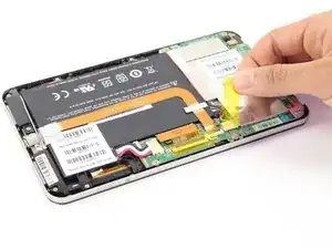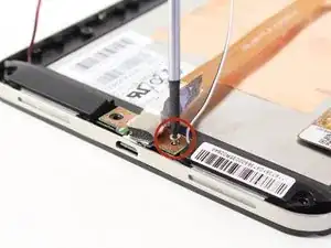 Оттяните фольгу, перекрывающую разъём зарядки, чтобы открыть ещё один винт Phillips 1.75 мм x 3 мм.