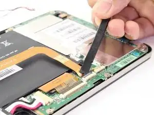 Выдвиньте белый разъём батареи из его посадочного места острым концом лопатки.