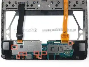 Используйте отвёртку Phillips #000, чтобы выкрутить десять винтов 3 мм, фиксирующих батарею к шасси.