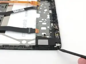 Используйте плоский конец лопатки, чтобы поддеть вверх между динамиком и шасси дисплея.