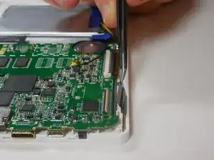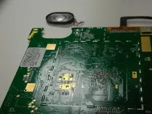 Динамик расположен у края материнской платы. Чтобы удалить его, потребуется припаять соединения динамика.