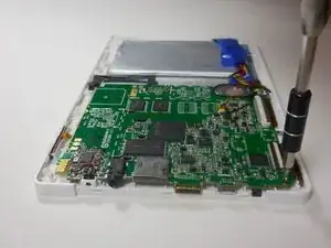 Снимите материнскую плату, открутив четыре винта длиной 4 мм по краям платы с помощью крестовой отвертки 00.