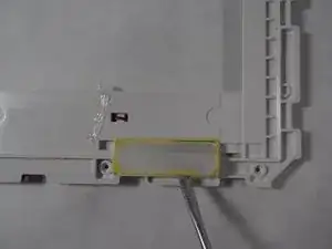 После удаления винтов снимите последнюю защитную плёнку, закрывающую динамик, как показано на изображении.