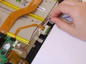 Левый динамик Insignia Flex 10.1 NS-P10W8100 находится под ZIF-коннектором на материнской плате. Хотя ZIF-коннектор не подключён к динамику, рекомендуется снять ZIF-коннектор, чтобы динамик не повредил его.