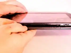 Вставьте край пластикового открывателя в щель между экраном и задней крышкой по периметру устройства.