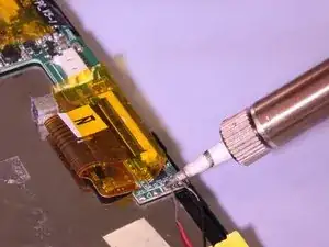Нагрейте место соединения с проводом красного цвета с помощью паяльника.