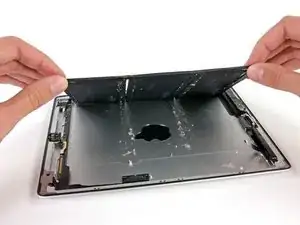 Батарея в iPad третьего поколения очень плотно приклеена к алюминиевой рамке с помощью большого количества прочного клея.