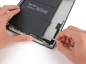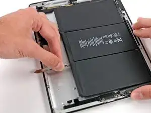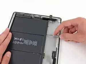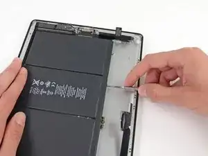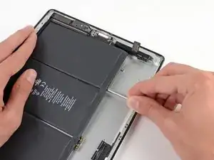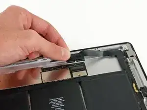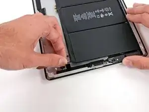 Осторожно приподнимите левую сторону батареи, поворачивая её в сторону правой части iPad.