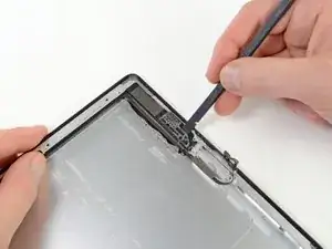 Вам нужно будет освободить клей, удерживающий антенну на передней панели, не повредив тонкие элементы, соединяющие антенну с нижней частью iPad. Следуйте следующим шагам тщательно.