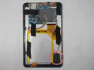 Медленно снимите чёрную термоклейкую ленту с задней панели планшета, чтобы провода могли свободно двигаться.
