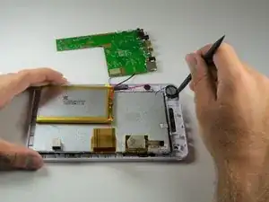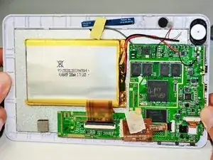 Чтобы добраться до динамика, придётся пройти мимо платы и выполнить некоторые паяльные работы, для чего потребуется аккуратность. Замена динамика должна устранить любые проблемы со звуком на Kurio 7.
