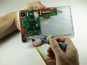 С помощью отвертки Phillips #00 удалите восемь винтов длиной 40 мм, удерживающих материнскую плату на месте.