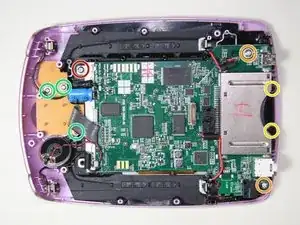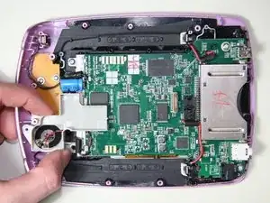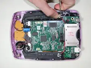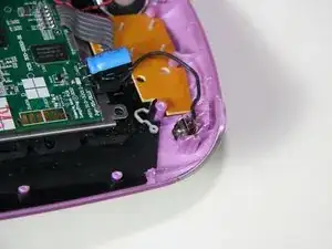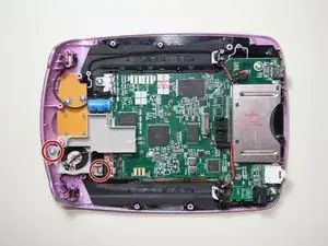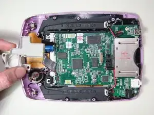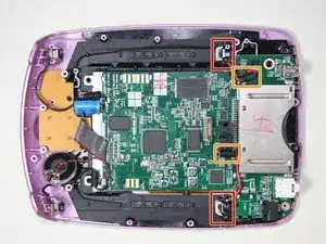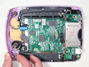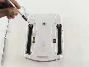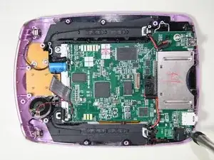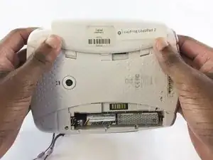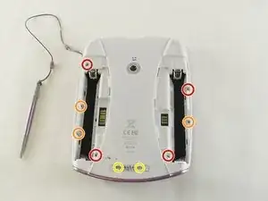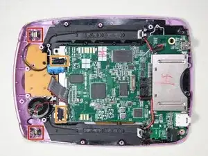 Самые упорные защёлки, удерживающие переднюю и заднюю панели, находятся вдоль верхнего края планшета вокруг слота для игровых картриджей. Это, скорее всего, последняя область, которая освободится, и для этого может потребоваться умеренное усилие.