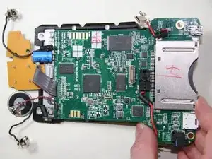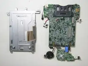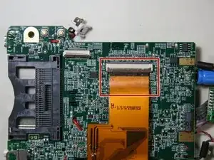 Материнская плата и узел дисплея всё ещё соединены лентопроводным кабелем, который может быть повреждён при сильном напряжении.