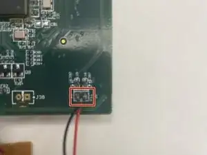 Отделите плату от задней крышки устройства, отсоединив чёрно-красный проводной разъём от задней крышки.