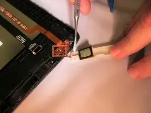 Вставьте пластиковый зонд через вкладку и приподнимите, чтобы удалить динамик из гнезда.