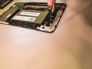 Начните с боковой стороны и двигайтесь вокруг планшета, чтобы снять заднюю крышку. Для этого используйте металлическую лопатку.