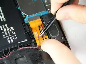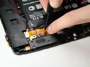 Используя поддевательный инструмент или руки, потяните динамик, чтобы извлечь его из планшета.