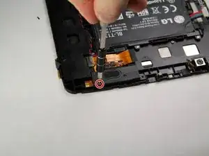 Удалите один винт Phillips #000 длиной 4 мм, фиксирующий динамик.