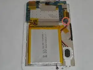Используйте отвертку Philips #00, чтобы удалить два винта диаметром 0,8 мм, удерживающие крышку динамика на месте.