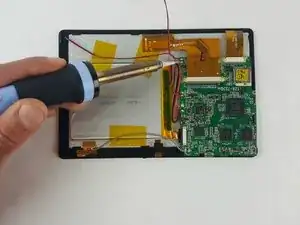 Используйте паяльный пистолет, чтобы отсоединить положительный и отрицательный провода, соединяющие батарею с платой.