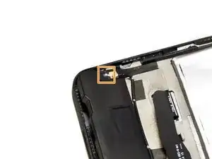 Найдите верхний динамик, черный полупрямоугольный элемент на верхней правой стороне планшета.