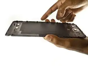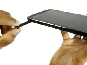 Используя плоский конец инструмента, аккуратно подденьте корпус, начиная от слота microSD, медленно скользя инструментом по внутреннему краю корпуса.