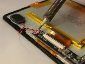 Используйте паяльный инструмент, чтобы удалить два провода динамика с материнской платы.